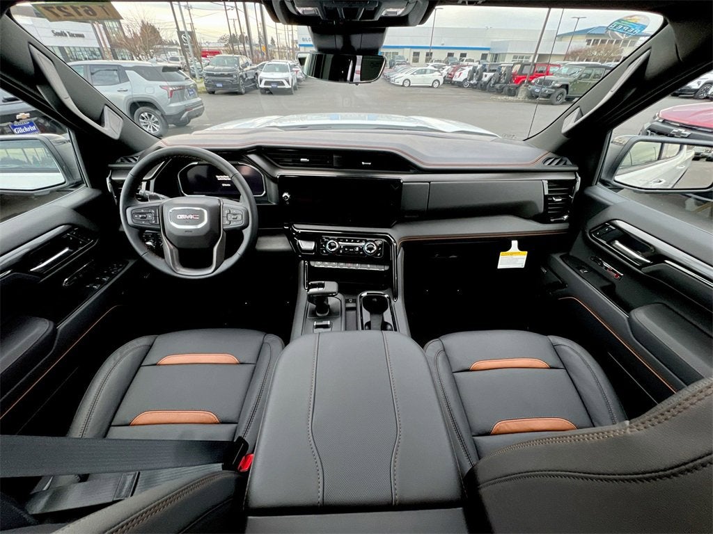 Summit White 2026 GMC Sierra 1500 AT4 4WD 10-Speed Automatic EcoTec3 6.2L V8 10-Speed Automatic, 4WD, Jet Black With Kalahari Accents Leather.