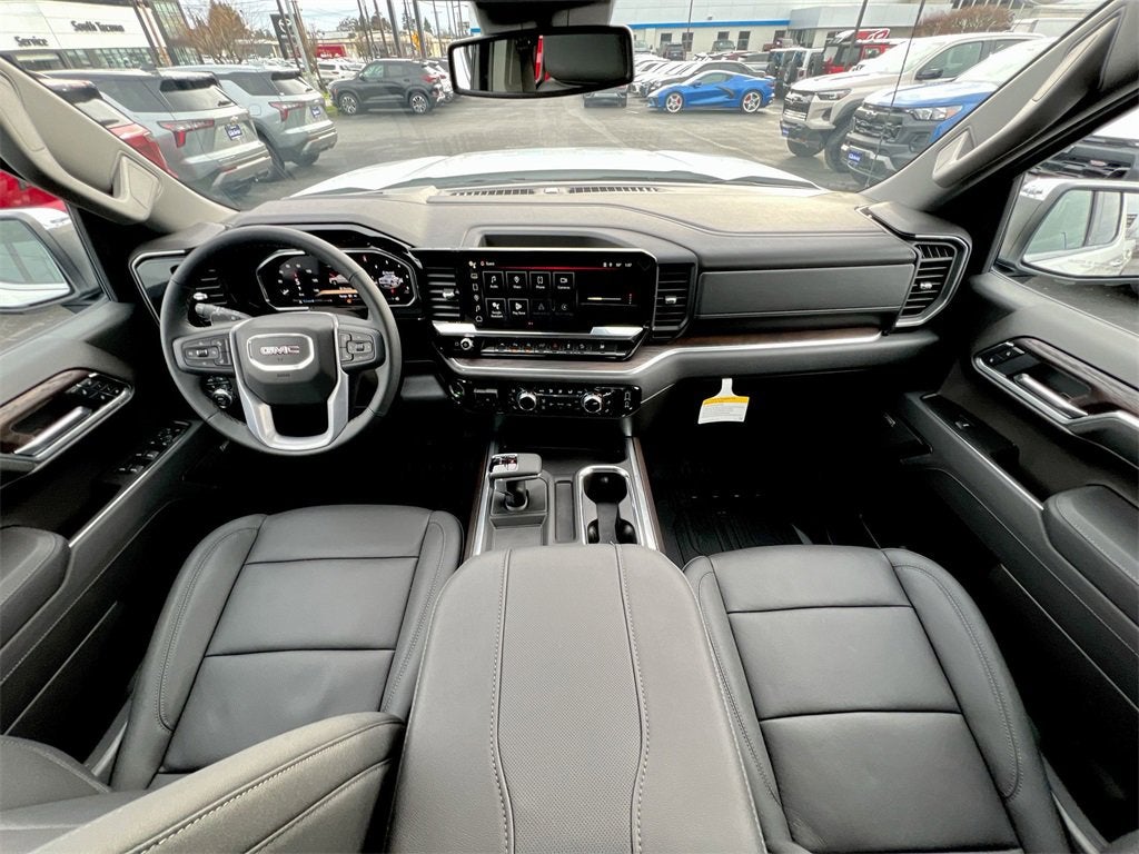 Summit White 2026 GMC Sierra 1500 SLT 4WD 10-Speed Automatic EcoTec3 6.2L V8 10-Speed Automatic, 4WD, Jet Black Leather.